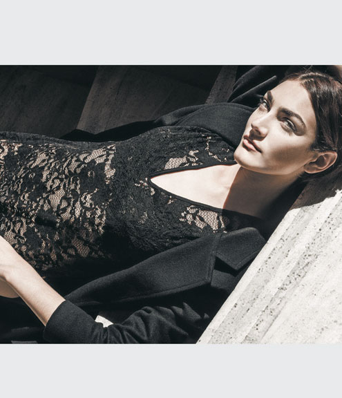 Corpiño ($502, Peter Pan), túnica con escote en V ($1128) y tapado de paño ($5550, Kosiuko). Imagen anterior Imagen siguiente