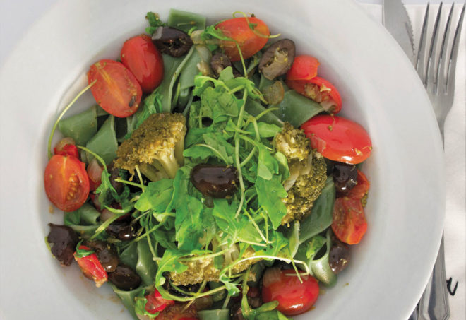 final, añadir sal y pimienta a gusto, espolvorear con hojas de rúcula
