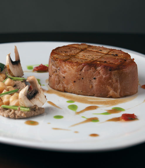 Preparación: Disolver la sal en el agua, introducir la carne y dejarla toda la noche en la salmuera, el día posterior sacarla, ponerla sobre film, agregar el aceite, la pimienta y el tomillo, enrollar y meter en una bolsa de vacío. Cocinar durante 6hs a 68 grados, transcurrido el tiempo enfriar inmediatamente en agua y hielo