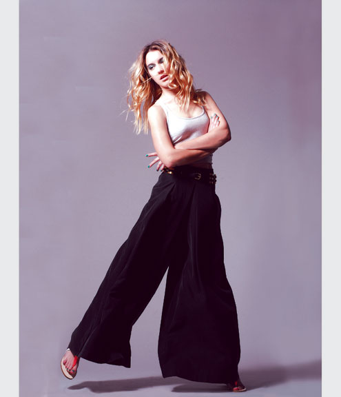 Musculosa de algodón ($99, Orgullosa María), pantalón ($740, Paula Cahen D’Anvers), cinturón de cuero con herrajes metálicos (Vitamina) y sandalias con detalles.